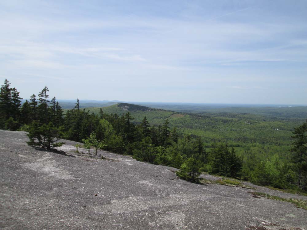 Directions to trailhead: From US 1A in East Holden, take Upper Dedham Road south, then eventually bear left onto Bald Mountain Road. At a junction with Johnson Road, Bald Mountain Road turns right. Instead, continue straight on Johnson Road. The Bald Mountain access road will be on the left shortly thereafter, with parking on a large ledge.