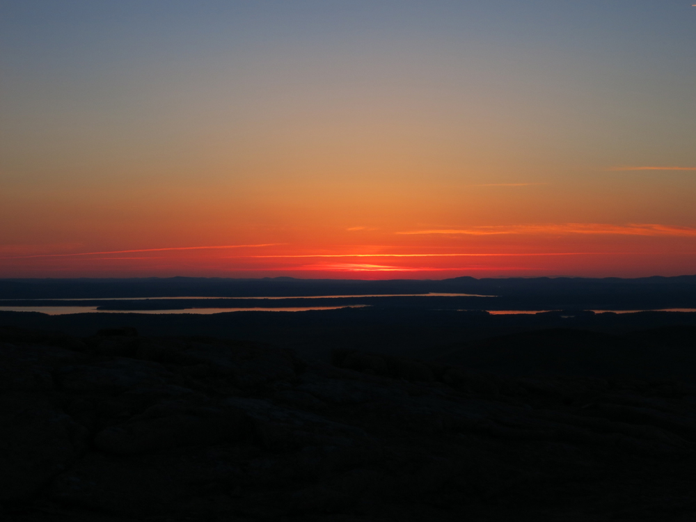 Trail was mostly dry. A bit more rugged than I would have expected, considering the popularity of the mountain (compared to the rock paved Gorge Path below it). Lots of nice open views on the upper half of the trail, though the nearby auto road doesn't allow for much of a natural feel (plenty of other peaks in the park to go to to get away from the road). Very nice sunset from the northern ledges.