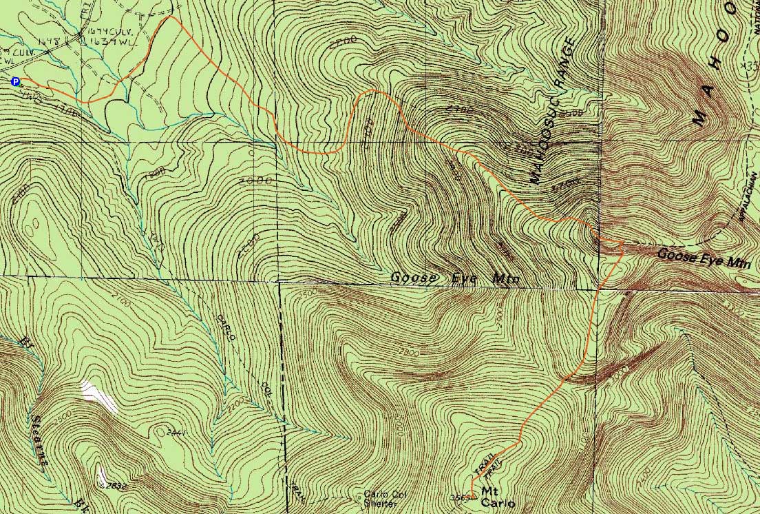 Route: Goose Eye Trail, (Goose Eye Mountain), Goose Eye Trail, Mahoosuc Trail, (Mt. Carlo), Mahoosuc Trail, Goose Eye Trail, (Goose Eye Mountain), Goose Eye Trail