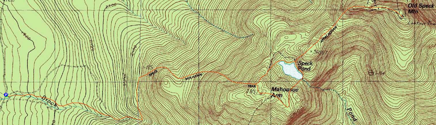 Route: Speck Pond Trail, Mahoosuc Trail, Old Speck Trail, (Old Speck), Old Speck Trail, Mahoosuc Trail, May Cutoff, (Mahoosuc Arm), May Cutoff, Speck Pond Trail