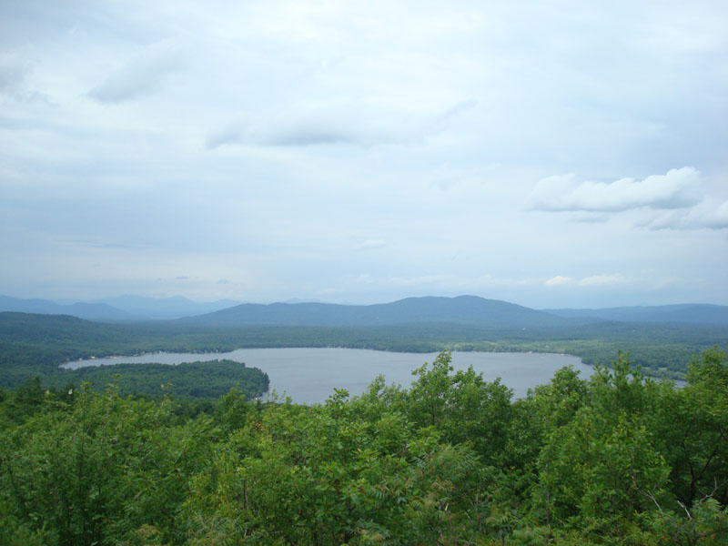 Despite the clouds, the views were excellent - Province Lake and Green Mountain straight ahead and the Sandwich Range and Ossipees not too much further. There was another viewpoint on a back ledge, looking toward points to the south and southwest. In addition, there were good blueberries on this back ledge (the ones up above were a bit tart).