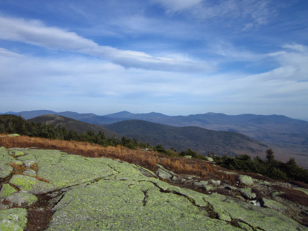 Looking at the Carrabassett Valley high peaks from near the summit of Saddleback Mountain