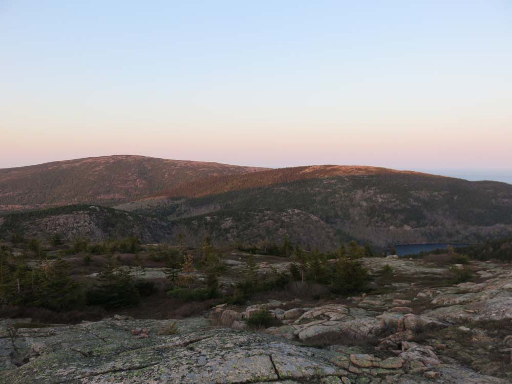 Trails were snow free and mostly dry (there still is a patch of snow on the east face of Sargent). Giant Slide Trail was rugged (boulders and caves) along the section prior to the Sargent Northwest junction, but neat. Nice sunset above treeline.