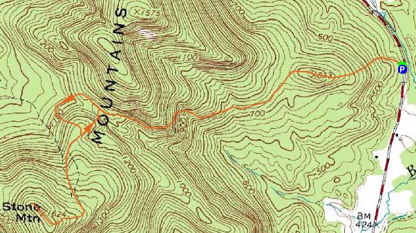 Route: Burnt Meadow Trail, Twin Brook Trail, bushwhack, unknown trail, (Stone Mountain), unknown trail, bushwhack, Twin Brook Trail, Burnt Meadow Trail
