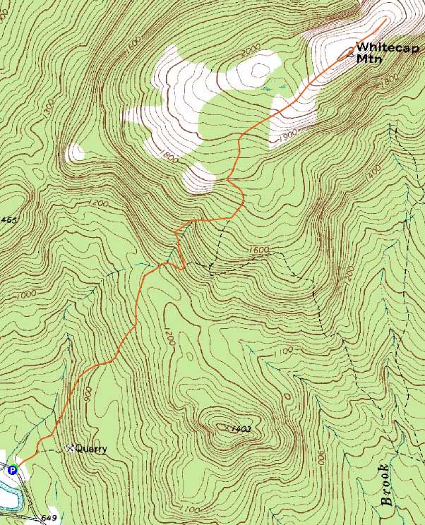 Directions to trailhead: Take Route 5 north from Bethel. Shortly after leaving US 2, take a right onto Andover Road, crossing over Ellis River. Shortly thereafter, take a left onto East Andover Road. The Rumford Whitecap parking area will be on the left a few seconds thereafter and the Orange Trail trailhead on the right.