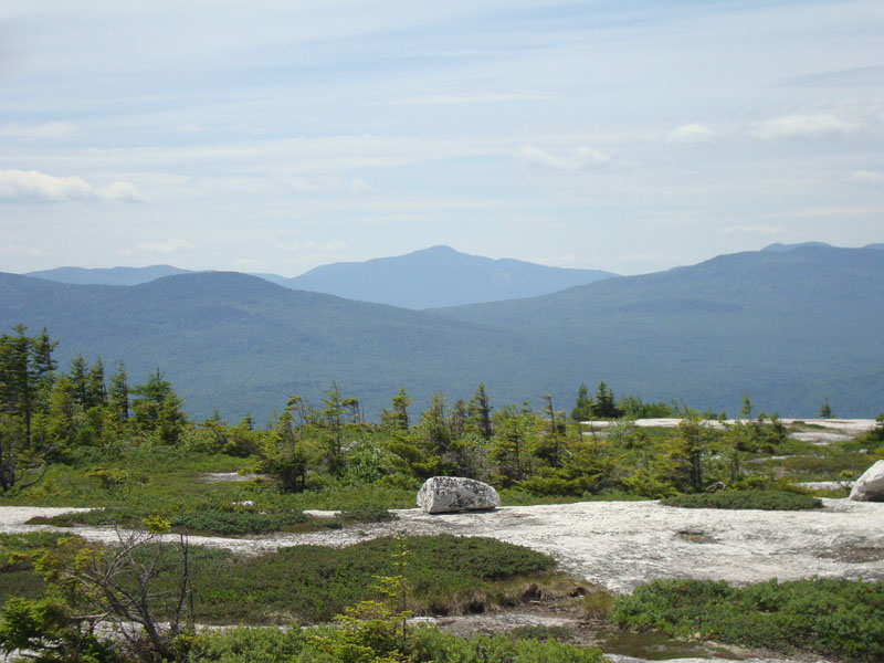 After going left at an unmarked intersection, the trail reached a sub-alpine area, then eventually made it to the vast ledgy summit area. After reaching the highpoint, I continued eastward a bit further, taking in excellent views in all directions, as well as enjoying a break from the deer flies, thanks to the wind.