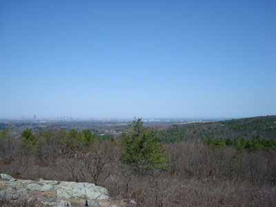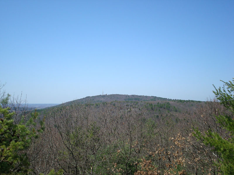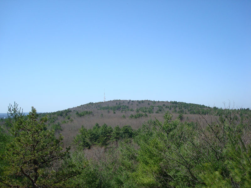 Looking at Great Blue Hill from near the summit of Wolcott Hill