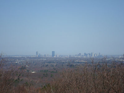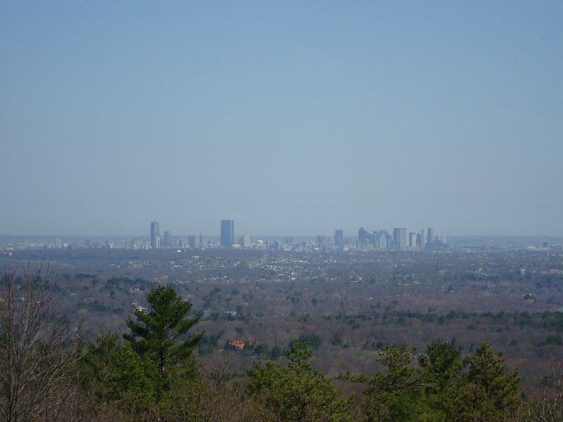 After reaching the observatory, we followed an obscure trail as a shortcut to the lookout tower. The obscure trail became so obscure that it ended up being a bushwack. Nonetheless, we made it and were able to get nice views of the Boston sky line.