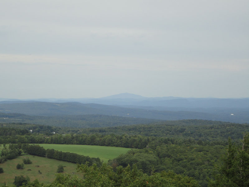 Reaching the viewless summit area (from the ground anyway), I climbed the fieldstone firetower and soon had cloudy, yet excellent views in all directions, ranging from Mt. Greylock to Mt. Tom to Mt. Monadnock to Mt. Snow.