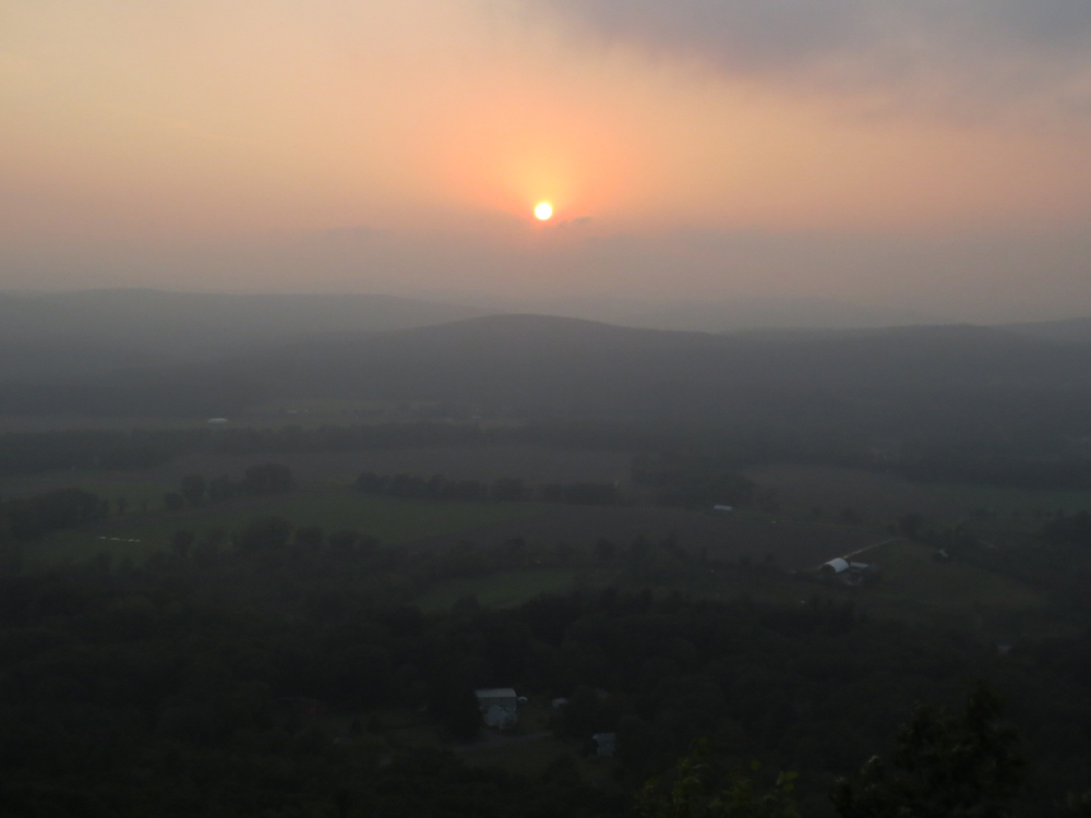 Trail was damp in places from rain earlier in the day. Took the trail proper up (goes past the abandoned Deerfield Academy ski area) then went direct down the access road on the way out. Nice views as the fog started to burn off.