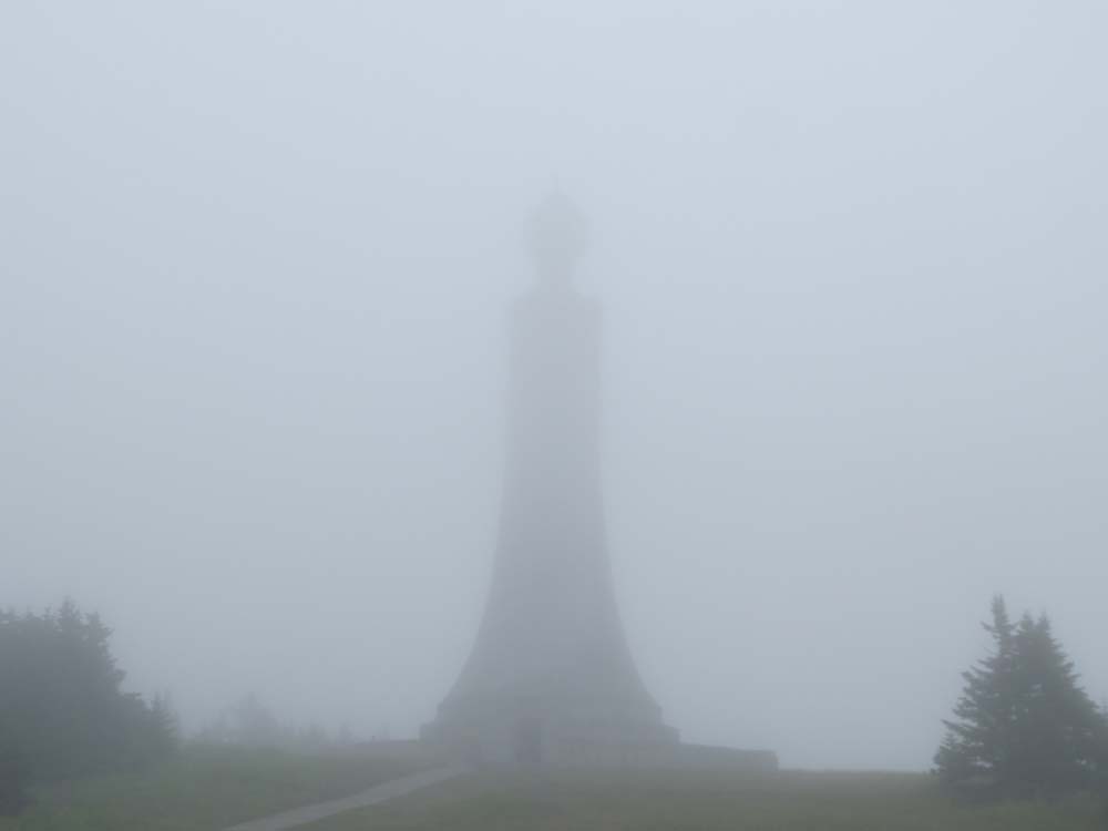 Eventually reaching the busy but foggy summit of Greylock, we hit the highpoint (the summit tower had a sign indicating that it is closed in 2013 and 2014 for repairs), then went over to Bascom Lodge for lunch.