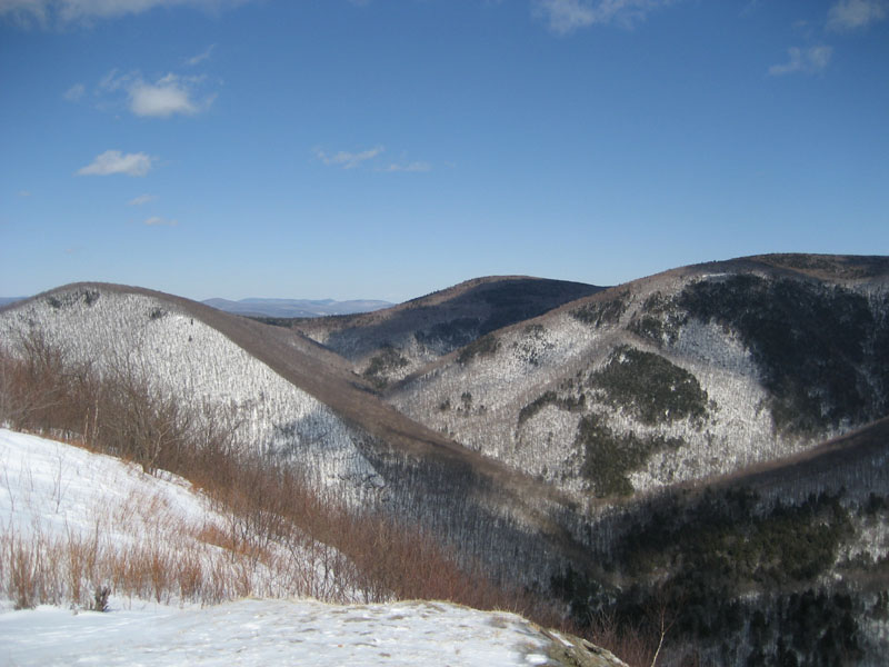 While the at trailhead skies were mostly cloudy, it was quickly turning into a bluebird day at Stony Ledge with views reaching well into Vermont.