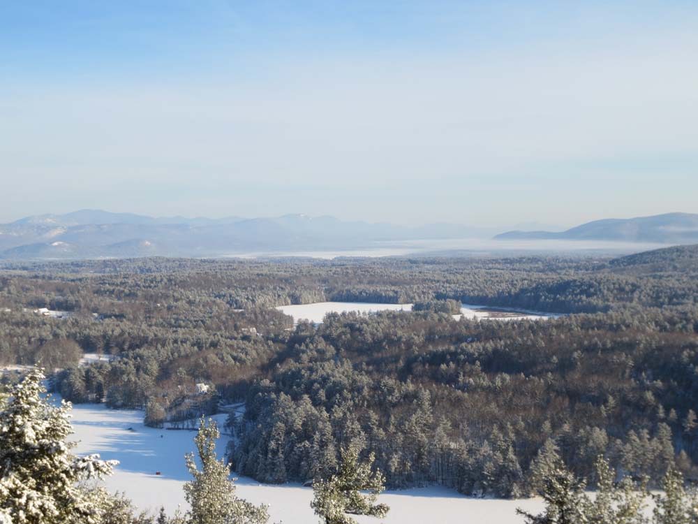 Directions to trailhead: From Ashland, take Route 132 south, then bear left onto Winona Road. Take a right onto Dana Hill Road. Take a left onto Lower Oxbow Road. Take a left onto Sky Pond Road. The Sky Pond boat launch and parking area will be on the right just prior to the end of the road (not plowed in winter). The Bald Ledge Trail starts as the continuation of Sky Pond Road.