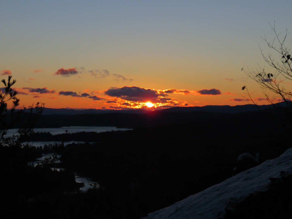Directions to trailhead: From Ashland, take Route 132 south, then bear left onto Winona Road. Take a right onto Dana Hill Road. Take a left onto Lower Oxbow Road. Take a left onto Sky Pond Road. The Sky Pond boat launch and parking area will be on the right just prior to the end of the road (not plowed in winter). The Bald Ledge Trail starts as the continuation of Sky Pond Road.