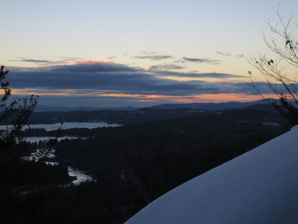 Directions to trailhead: From Ashland, take Route 132 south, then bear left onto Winona Road. Take a right onto Dana Hill Road. Take a left onto Lower Oxbow Road. Take a left onto Sky Pond Road. The Sky Pond boat launch and parking area will be on the right just prior to the end of the road (not plowed in winter). The Bald Ledge Trail starts as the continuation of Sky Pond Road.