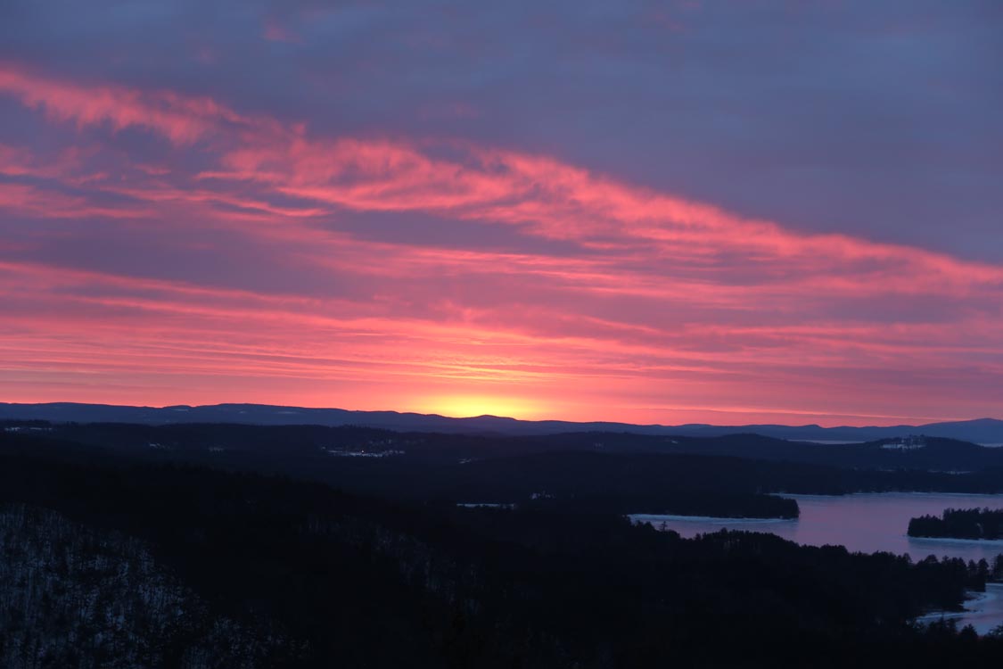 Directions to trailhead: From Ashland, take Route 132 south, then bear left onto Winona Road. Take a right onto Dana Hill Road. Take a left onto Lower Oxbow Road. Take a left onto Sky Pond Road. The Sky Pond boat launch and parking area will be on the right just prior to the end of the road (not plowed in winter). The Bald Ledge Trail starts as the continuation of Sky Pond Road.
