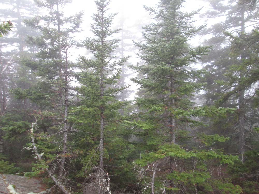 No views in the rain on the Hammond Trail from Bald Mountain. Excellent views available in good weather via a very short northerly bushwhack.