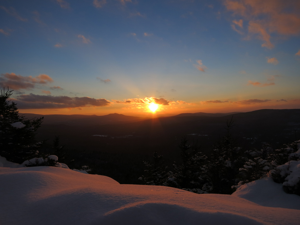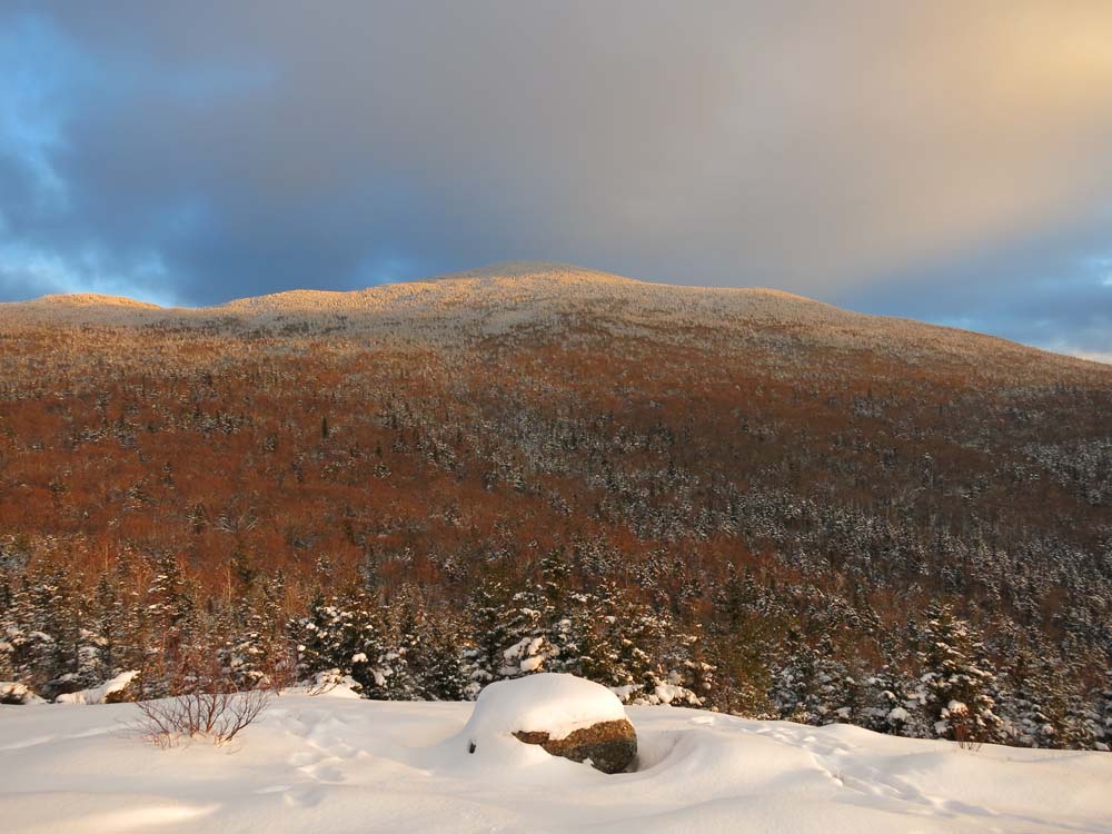 Directions to trailhead: Take Route 112 West from Lincoln to Route 116 North. The short road to the Mt. Kinsman Trail trailhead and parking area will eventually be on the right, just before Tamarack Camp. In winter 2013-14, the parking lot was plowed.