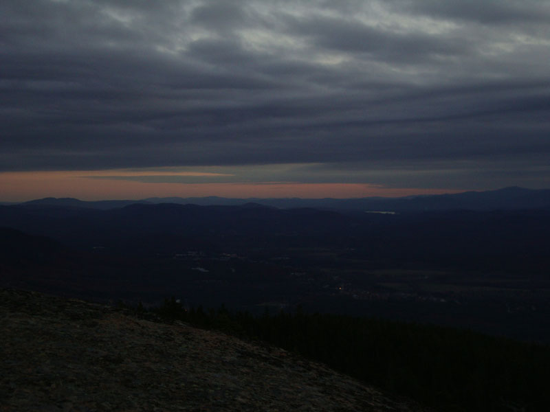 After some exploring around the ledges and perhaps an abandoned ski trail, I returned to the summit and ended up without much of a sunset - just some horizon colors to the south. Perhaps another day.