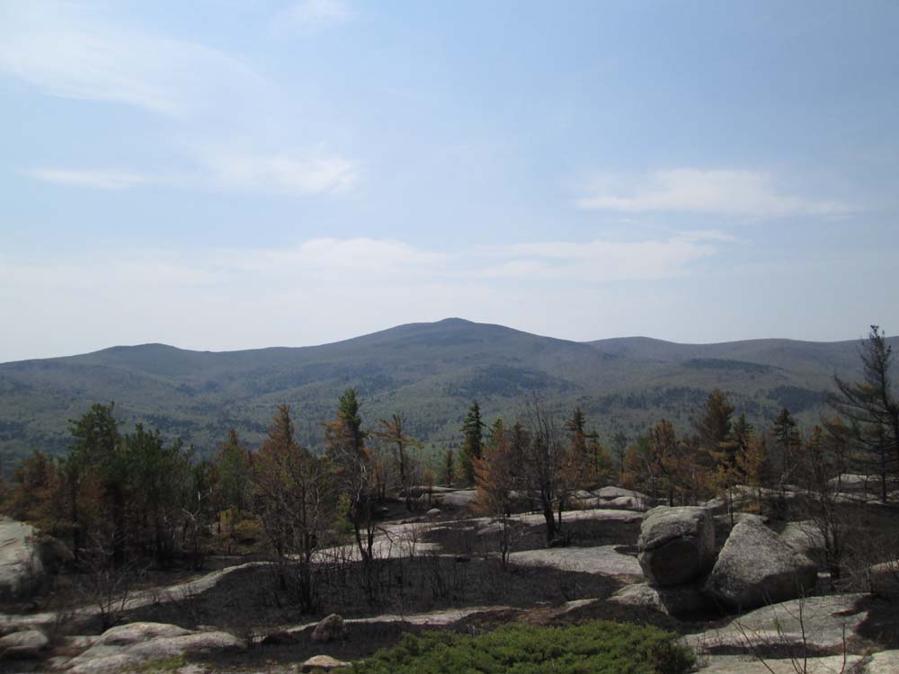 Arriving at the summit, perhaps half of the blueberry patches had been burned (suggesting a good crop next year). In addition, it appeared the fire had climbed up the peak on all sides. Interestingly, it appeared as if the flames may have originated from the controversial logging recently conducted within the Federally funded easement.