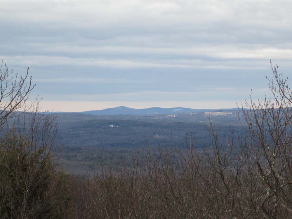 At the height of land, we bushwhacked up to Bean Hill in generally open woods, avoiding the subpeak with the mountain bike facility. Snowpack was generally 6-10" with some bare spots on southern facing areas. The summit ledge had decent views with the leaves down (Belknaps, Prospect), but would have narrow views with foliage. By the looks of it, this may have been a more popular peak once upon a time (memorial plaque from the 1950s, some old view enhancing cuts). It also appears there could be an informal trail heading off the northeast side of the peak, but I don't know where this would come out.