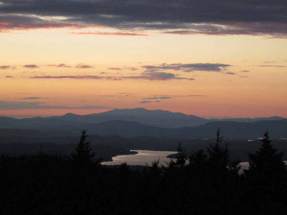Directions to trailhead: From Route 11A East (from Route 3), take a right on Hoyt Road. Continue down this road as it becomes Belknap Mountain Road. Eventually, take a left onto the Carriage Road. In season, one can drive up the road (gate locked at 6 PM) and park in the upper parking lot. The Red Trail trailhead is located beyond the shacks near the parking lot.