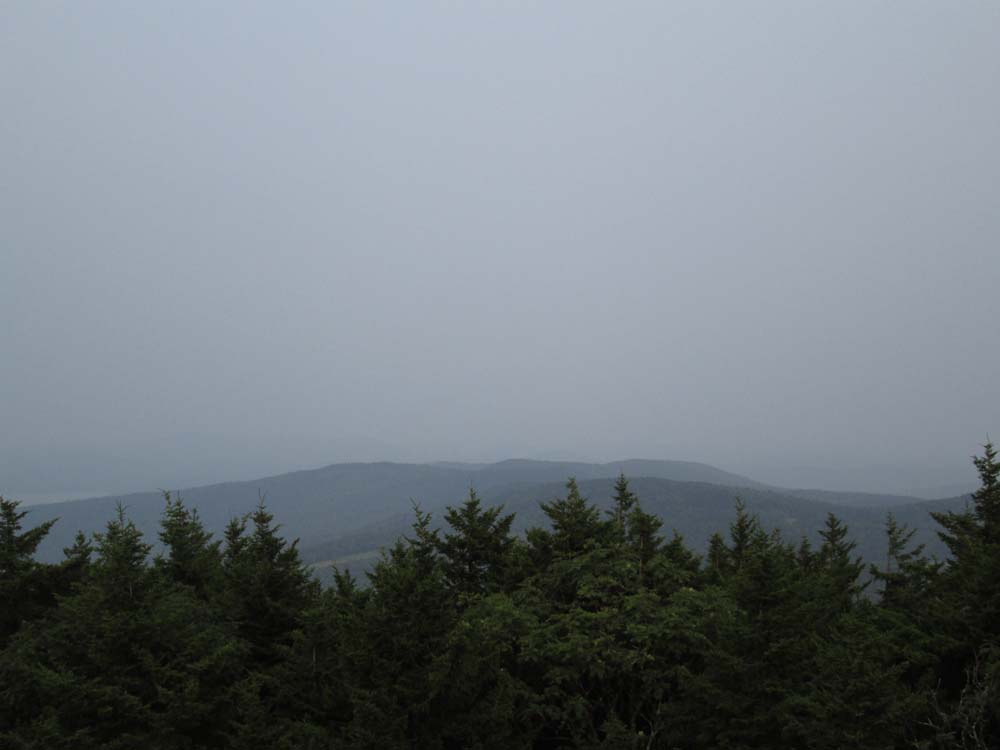 Footbed was generally dry, but some of the ledges were wet/slippery. Blueberries in this vicinity already picked over. Views very much obstructed from Canadian wildfire smoke.