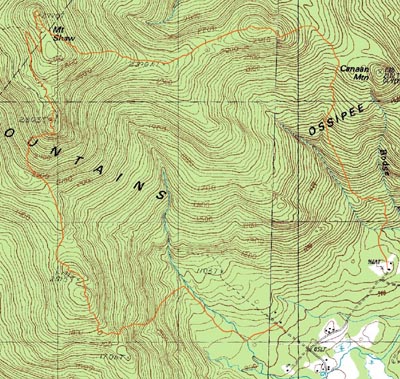 Route: Banana Trail, (Big Ball Mountain), Banana Trail, Black Snout Spur Trail, (Black Snout), bushwack, Black Snout Spur Trail, Black Snout Trail, (Mt. Shaw), Gorilla Trail, (Mt. Flagg), Mt. Flagg Trail