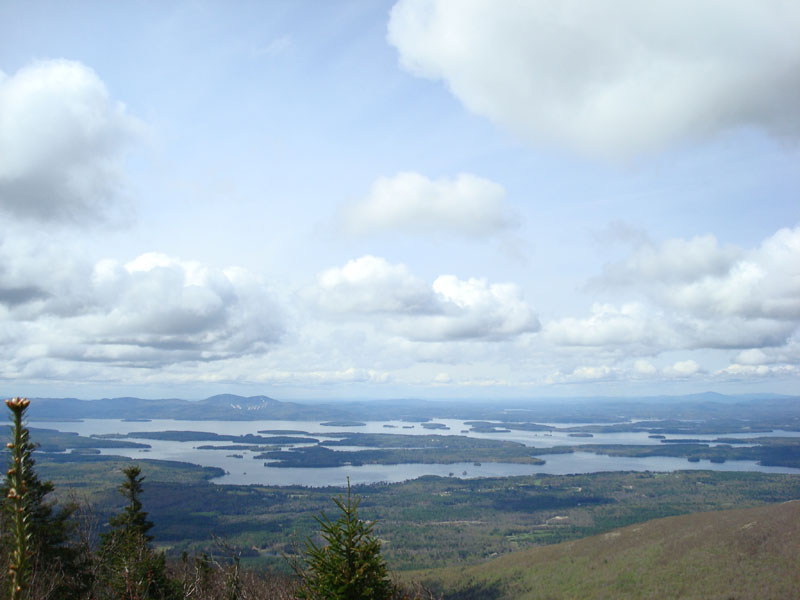 Looking at Lake Winnipesaukee from the Big Ball Mountain summit