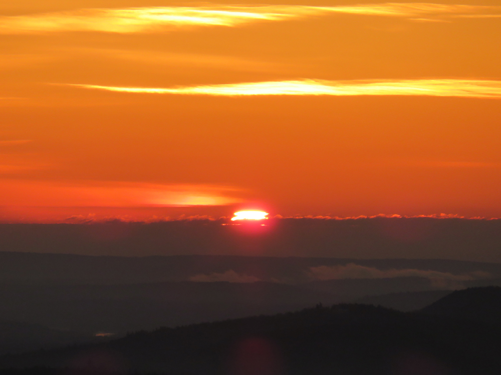 Tate Mountain Trail was also dry by virtue of ground frost. Recent logging has changed the lower half of it. Running up in the dark, I missed the turn off from the logging road (where the road/trail go through a cut-through berm; marked with a small cairn) and ended up continuing up it until it took a sharp turn left. The road parallels the trail, so I was able to bushwhack a short distance south (right) to get back on the corridor.