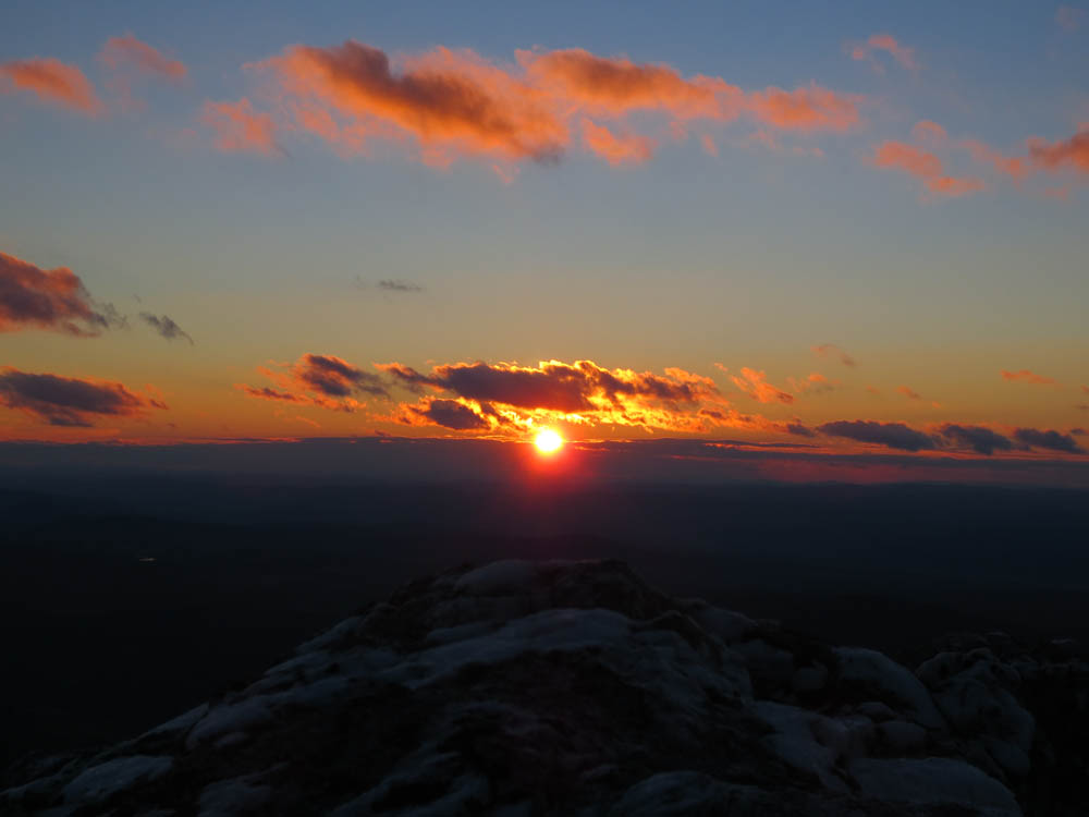 Trail was mostly dry and in good shape. Some minor black ice in a few places. One area of blue ice a few tenths below the summit, but easily bypassed. No need for traction until the next precip event. Slight dusting of snow up high.