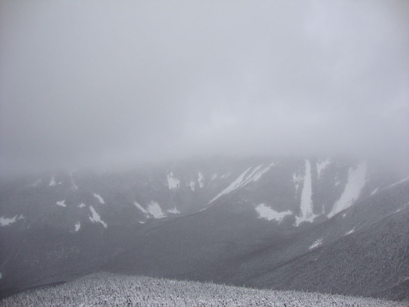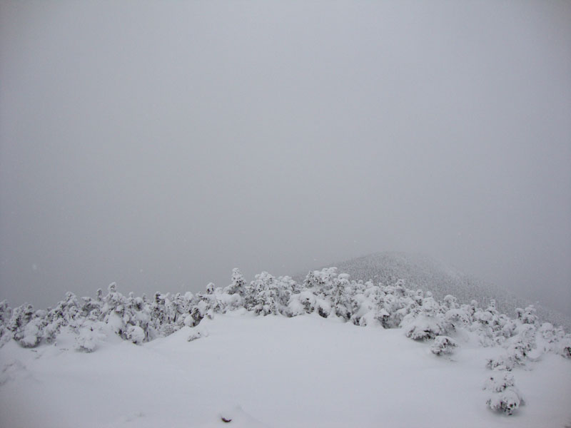 Nearing the col between Guyot and Zealand, we saw the first other people of the day - nice to know that we didn't have to do much more trailbreaking (not that it was overly difficult). Nonetheless, the Zealand summit spur was not broken out, and tracks heading northbound were quickly drifted over. Overall, the section of trail from Guyot to the Zeacliff spur junction was very slow going due to numerous blowdowns and leanover trees.
