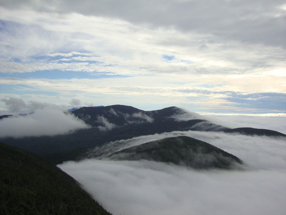 While it was cloudy in the notch, a climb up the rough, overgrown Hi-Cannon Trail revealed a nice undercast.