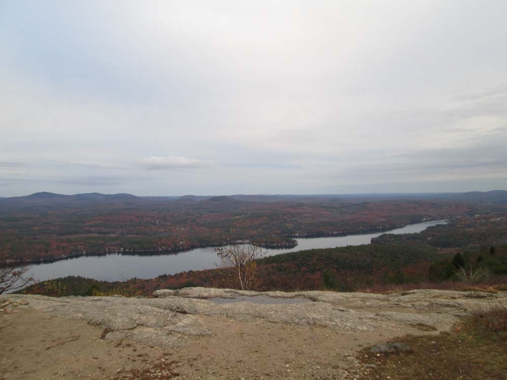 I then returned to the Boulder Loop and took it briefly to the Bay View (sort of have to know where this one is, especially with abundant leaves on the ground), then bushwhacked over to the Bee Line and took that to the Mt. Major Trail to the summit, then doubled down the Mt. Major Trail. Lots of leaves and some ledge was wet.