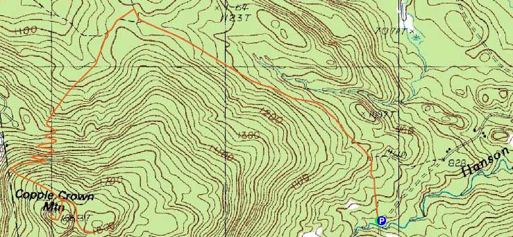 Route: Copple Crown Trail, (Copple Crown Mountain), East Peak spur trail, Copple Crown Trail