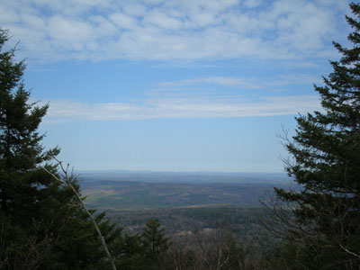Beyond the easy brook crossing, the trail starts to climb moderately up Crotched Mountain proper, soon reaching some ledgey vistas, and finally the summit.