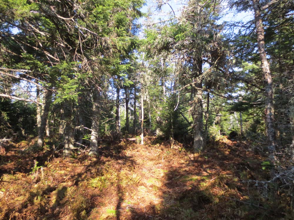 Initial logging road walk was mostly dry with a few minor mud patches. When then went uphill at a large older clearcut, which was rather muddy (on descent, we stayed off to the side in the woods, which were dry). Toward the top of the clearcut, we hopped onto an old logging road and followed it much of the way to the col south of Currier.