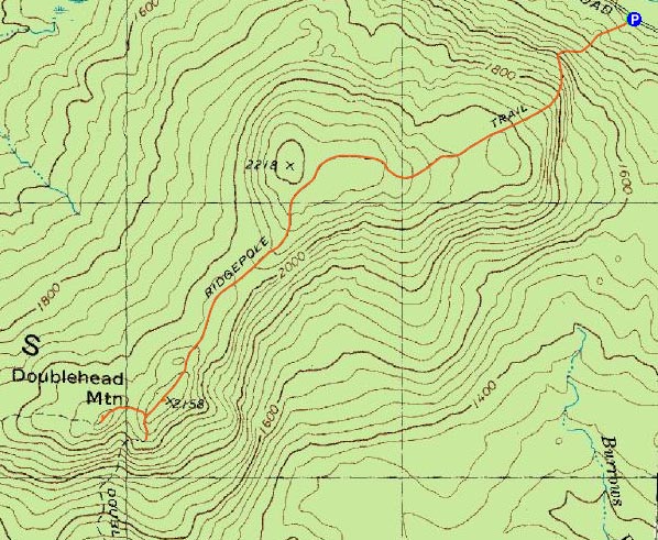 Route: Crawford Ridgepole Trail, (East Doublehead Mountain), Crawford Ridgepole Trail, (West Doublehead Mountain), Crawford Ridgepole Trail, Doublehead Trail, Crawford Ridgepole Trail, (East Doublehead Mountain), Crawford Ridgepole Trail