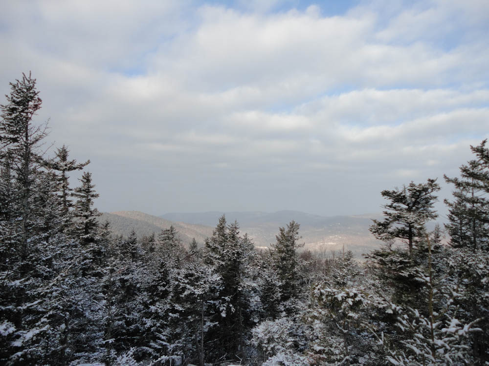 A little while after passing these ledges, the trail started to descend via a bunch of switchbacks. After passing over Old Mountain Road, the trail climbed up to Mt. Livermore, from where we had decent, but still cloudy views.