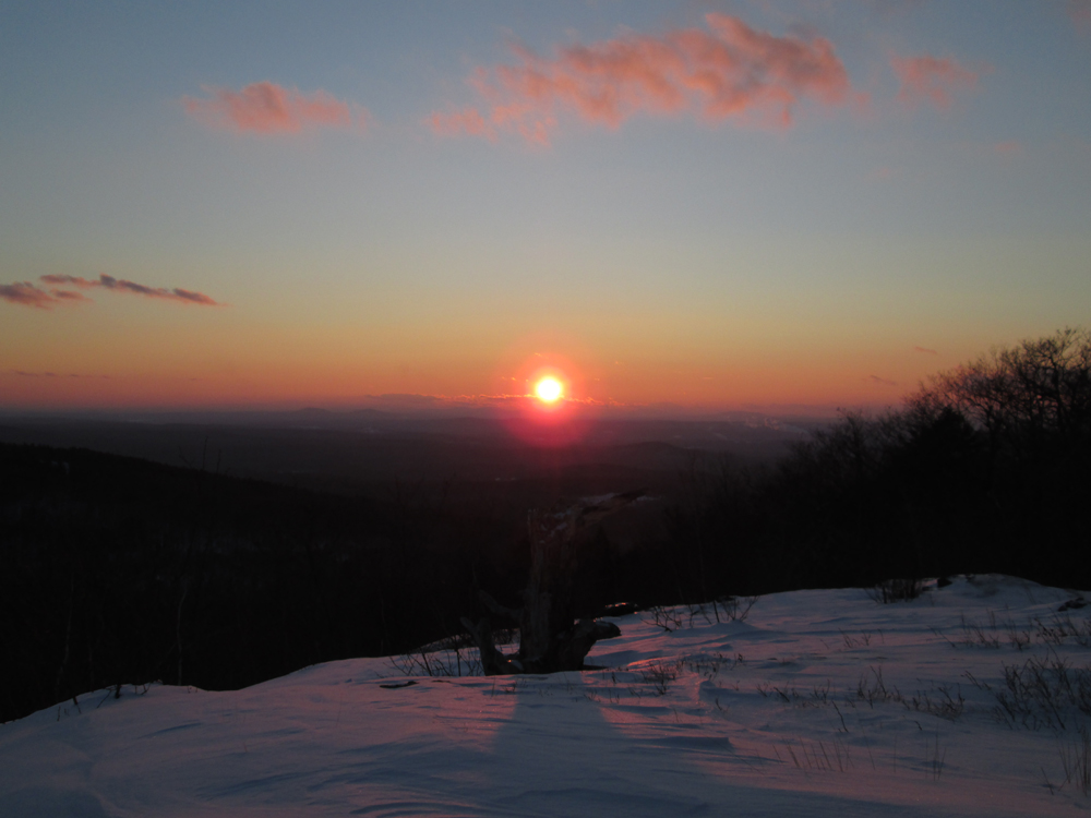 Access road is kept plowed, so if just going to the summit (decent views), no snowshoes or traction needed. If going to the southeastern ledges (very good views), snowshoes are not a bad idea - a foot of snow with 3 foot deep drifts.