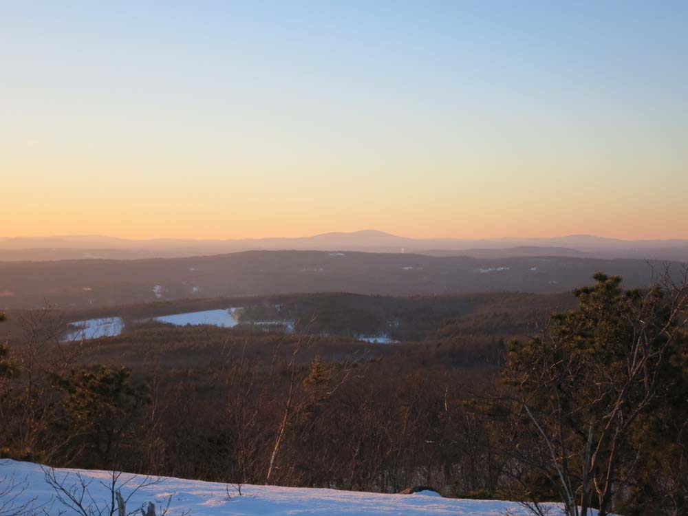 Directions to trailhead: From US 202 east of Concord, take Route 28 south. Take a left onto Short Falls Road. Bear right at a five way junction onto New Rye Road. Take a left onto Swamp Road. Take a left onto Mountain View Road. Bear right at the next junction, then head around a left curve. The access road (no vehicles allowed) will be on the right shortly thereafter, with utility poles heading up it.