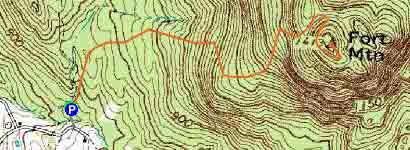 Directions to trailhead: From US 202 east of Concord, take Route 28 south. Take a left onto Short Falls Road. Bear right at a five way junction onto New Rye Road. Take a left onto Swamp Road. Take a left onto Mountain View Road. Bear right at the next junction, then head around a left curve. The access road (no vehicles allowed) will be on the right shortly thereafter, with utility poles heading up it.