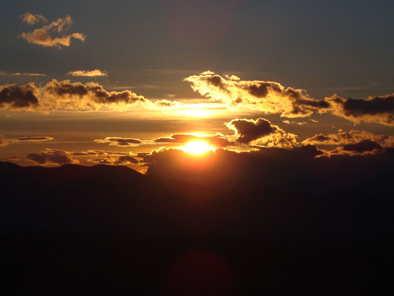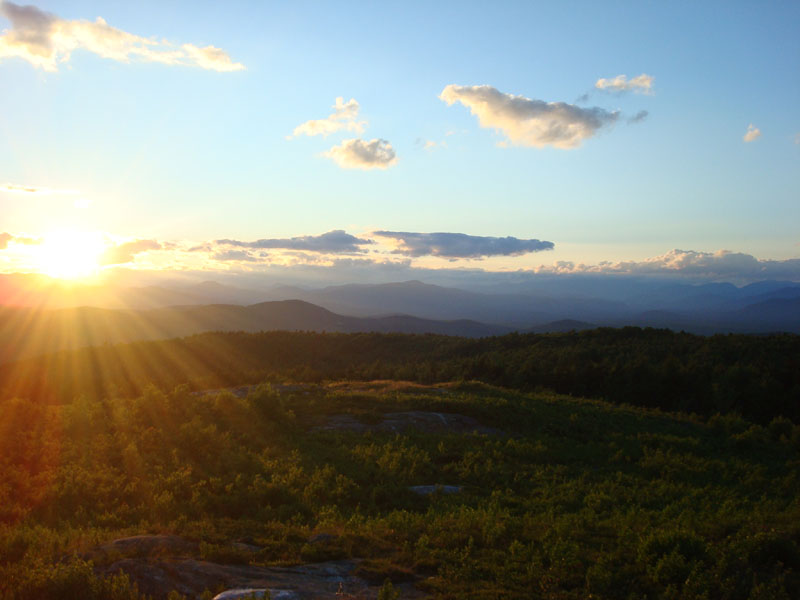 I spent about twenty minutes alternating between photographing the sun setting into the clouds and picking ripe blueberries. I have decided that Foss Mountain is perhaps the best non-lakeside sunset destination around - a bare summit with far reaching views (sunsets should be visible year round, as there aren't any trees or neighboring mountains that could be in the way), reachable via a short (non-winter/mud season) hike.