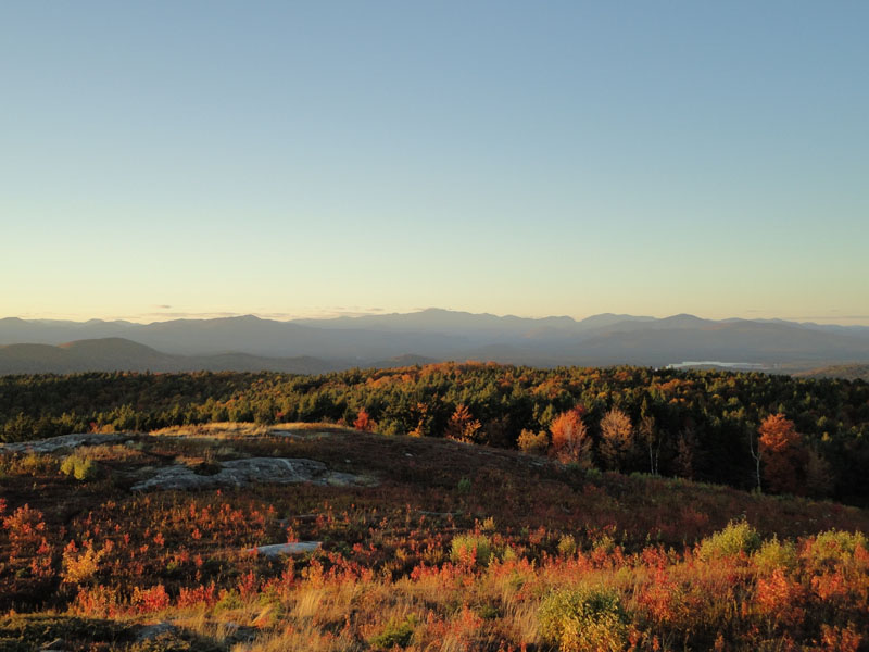 Not wanting to let a nice fall day slip away, I headed over to Foss Mountain for a brief jog. The blueberry fields were quite colorful with various colored shrubs. Reaching the summit, there were excellent views of the Presidentials.