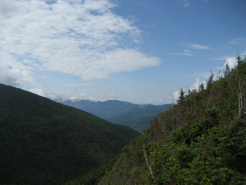 While things were cloudy at the start of the acent up the Gale River Trail (water crossings no problem), some blue sky emerged for awhile as I neared the Garfield Ridge Trail. Continuing to the hut and to the summit of Galehead, I had decent views from the near-summit viewpoint.