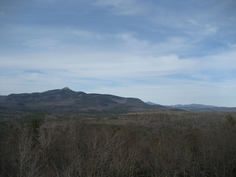 Looking north from the Great Hill summit at Mount Chocorua, Mt. Kearsarge North, and Cranmore Mountain.