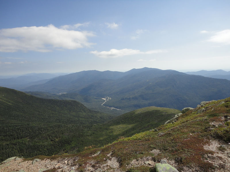 At a height of land, I bushwhacked west off the trail (just before it turned downhill and west) to what appeared to be the highpoint of North Isolation (I didn't find anything marking it as such). Through a quasi-blowdown patch, there were decent views of Mt. Washington and Boott Spur.