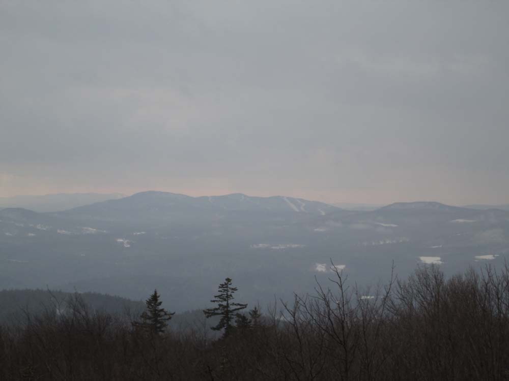 Passing snow obscured the excellent views to the Whites, however we could see Newfound Lake, Winnipesaukee, and Kearsarge from the three vistas adjacent to the summit