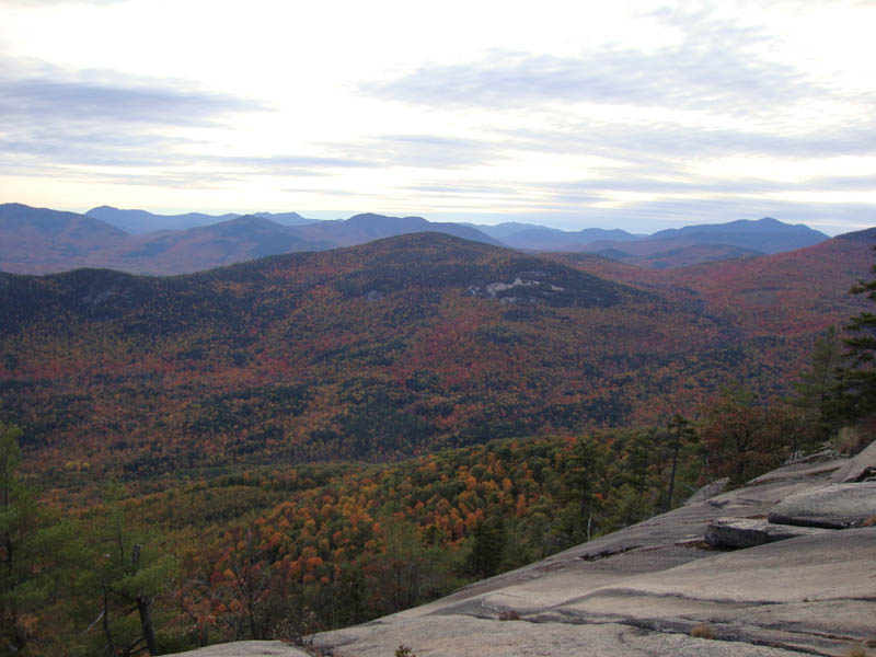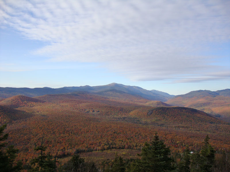 The views from the field at the bottom of the Iron Mountain Trail were tremendous - still some foliage hanging on in the valleys, along with a few patches of snow on Mt. Washington. Heading up the eroded Iron Mountain Trail, I stopped at the first viewpoint for some additional Presidential views. After a stop at the second view point (Wildcat-Carter views), I soon reached the nearly-viewless summit (though there is a narrow view of Mt. Washington if you stand on the benchmark).