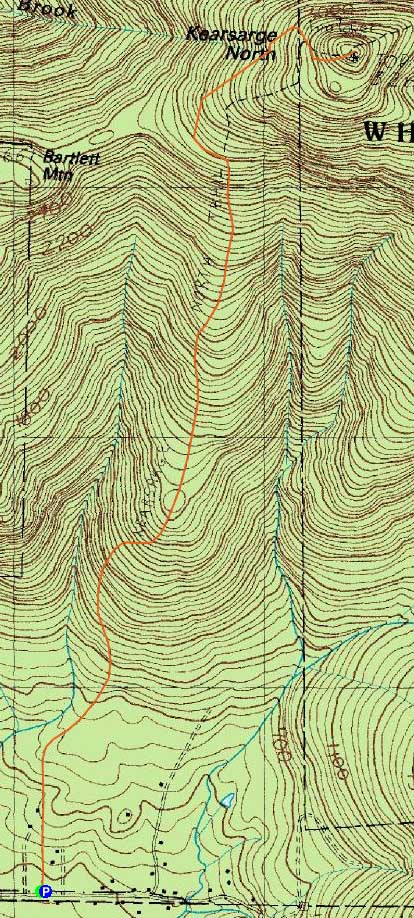 Route: Kearsarge North Trail, (Kearsarge North Mountain), bushwhack, Kearsarge North Trail